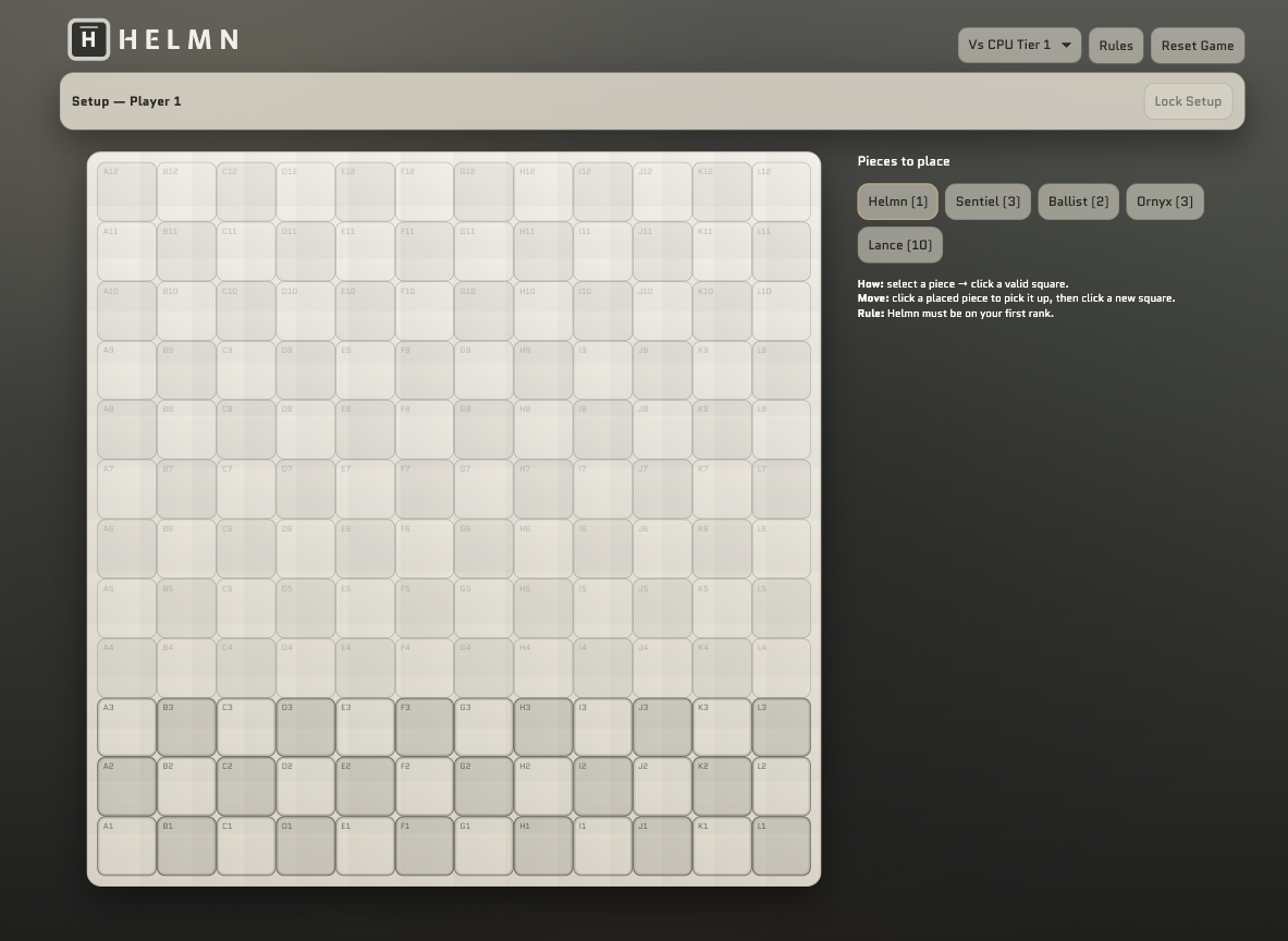 Helmn is a tactical strategy game focused on positioning, planning, and outmanoeuvring your opponent.